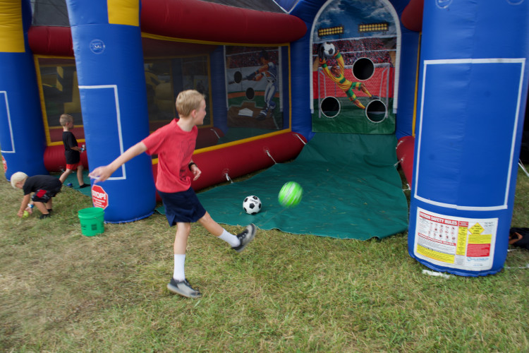 The 3 in 1 Sports is a versatile, eye-catching inflatable game station that brings three different sports challenges into one compact rental. Built with sturdy, brightly colored vinyl and large arched openings, it creates three side-by-side play lanes—perfect for fairs, company picnics, school events, or backyard parties where multiple players can compete or rotate through activities. Each lane is fully enclosed with mesh side panels for visibility and airflow while helping keep balls or other game pieces inside. The center lane features a themed backboard target area, and both end lanes provide open shooting or tossing zones so players can practice aim, take turns in friendly contests, or run small tournaments. Setup is straightforward and the open, walk-in design makes it easy for guests of different ages to participate. Designed for rental use, this unit offers a fun, competitive focal point that draws a crowd without requiring extra staffing—just supply the soft balls or sport-specific props you want to use and let the games begin.