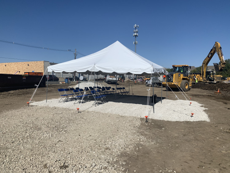 White 20x20 tent with 8 poles 1 center pole, 12 stakes, no side curtains self serve price listed (self serve-customer picks up, installs, dismantles, and returns). delivery and setup is available please contact us for options